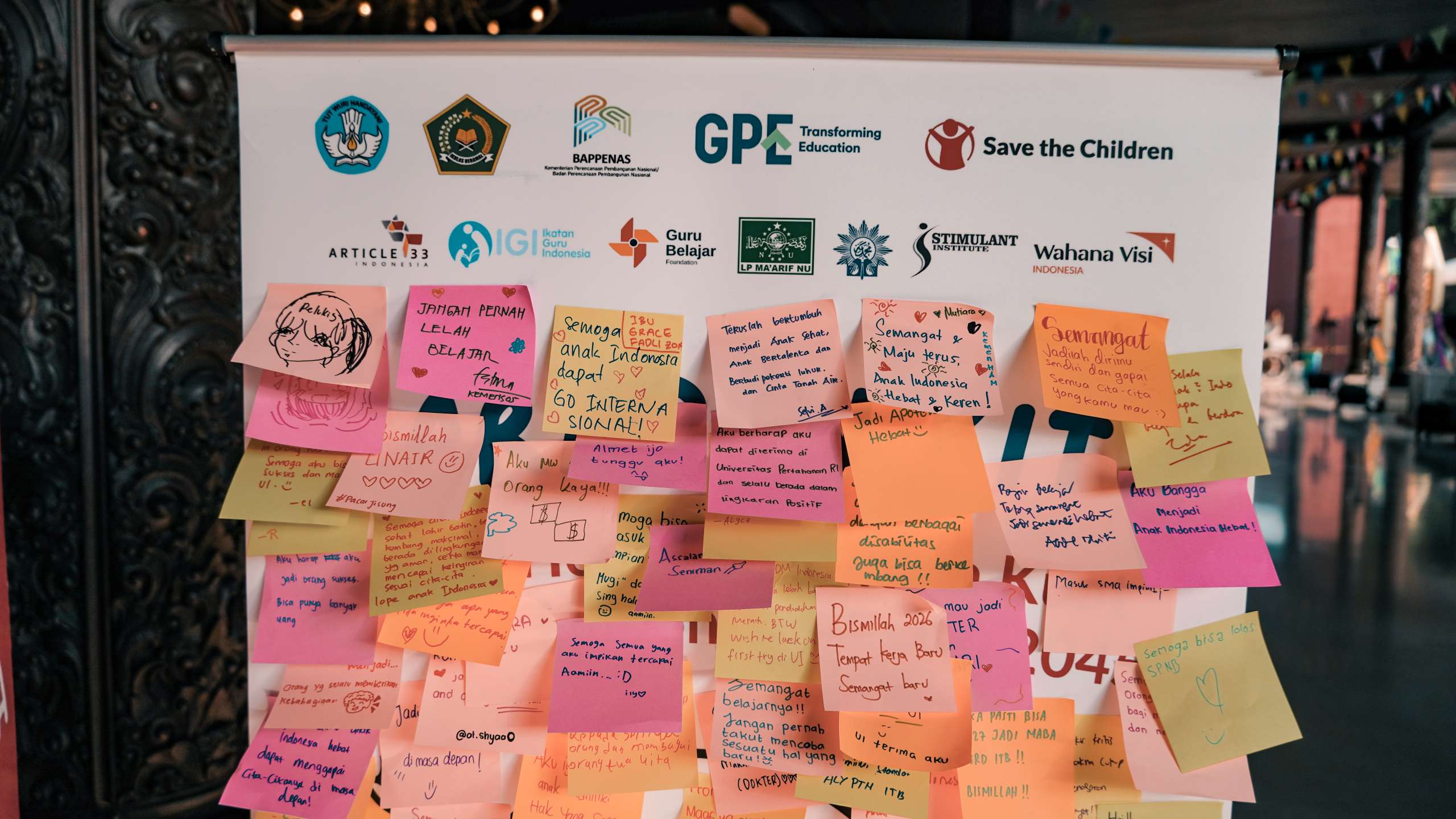 Sebanyak 154 orang menulis pesan harapan hingga cita-cita bagi anak Indonesia di stan Save the Children saat Festival Anak Indonesia Hebat di Taman Mini Indonesia Indah, Jakarta Timur, pada Selasa (22/7) lalu. Pada kesempatan itu, mulai dari anak-anak hingga orang dewasa antusias menulis harapannya di sebuah kertas kecil yang kemudian ditempelkan di pohon harapan.