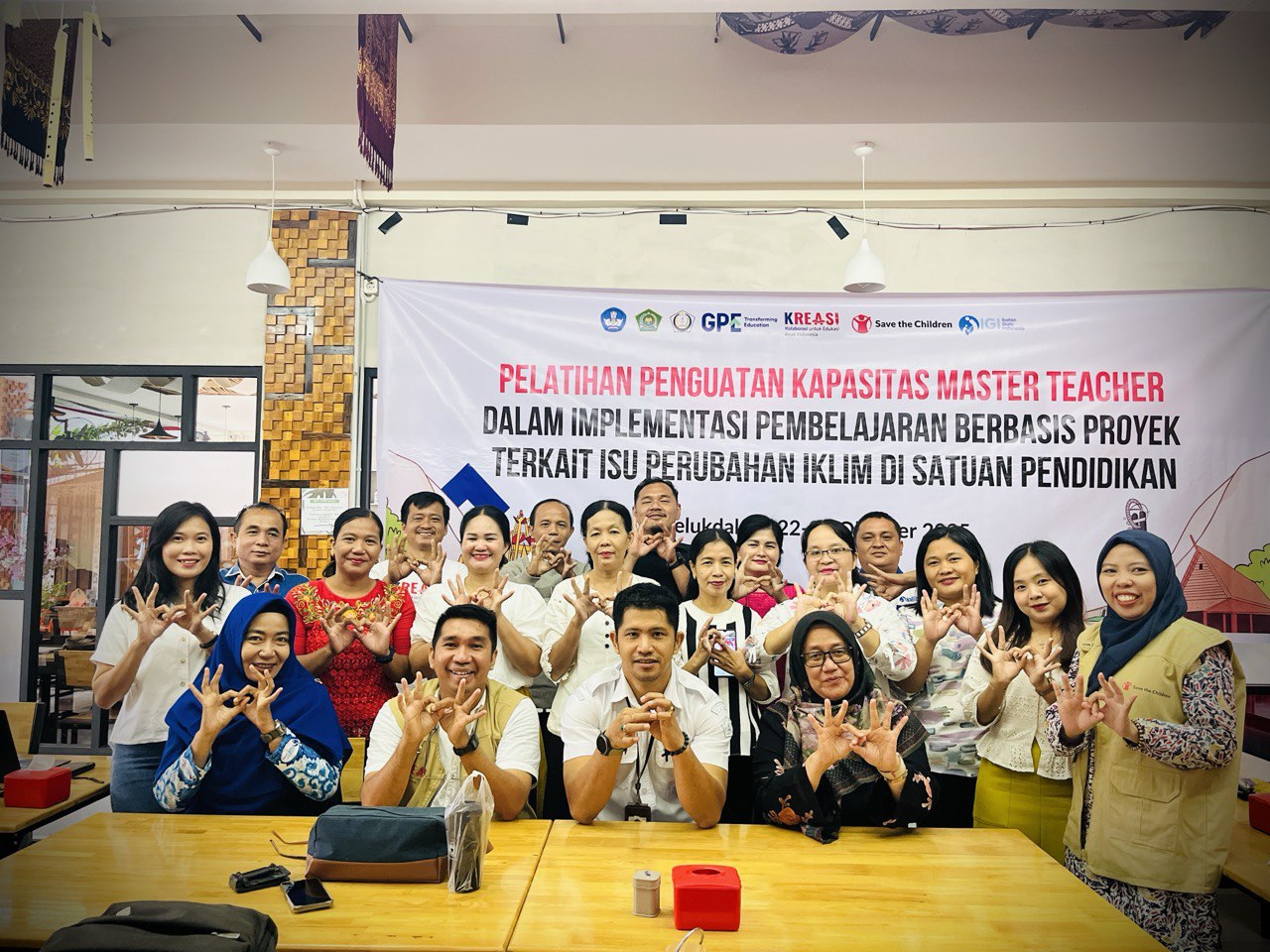 Integrasi isu Perubahan Iklim ke dalam kurikulum pendidikan dasar diperkuat melalui pelatihan penguatan kapasitas master teacher. Pelatihan yang berfokus pada penerapan metode Pembelajaran Berbasis Proyek (PBL) terkait isu perubahan iklim ini diikuti oleh 14 Master Teacher pada tanggal 22–24 Oktober 2025. Kegiatan ini bertujuan untuk membekali para guru dengan metode PBL dan Inkuiri yang relevan dengan tantangan lingkungan, baik secara global maupun lokal.