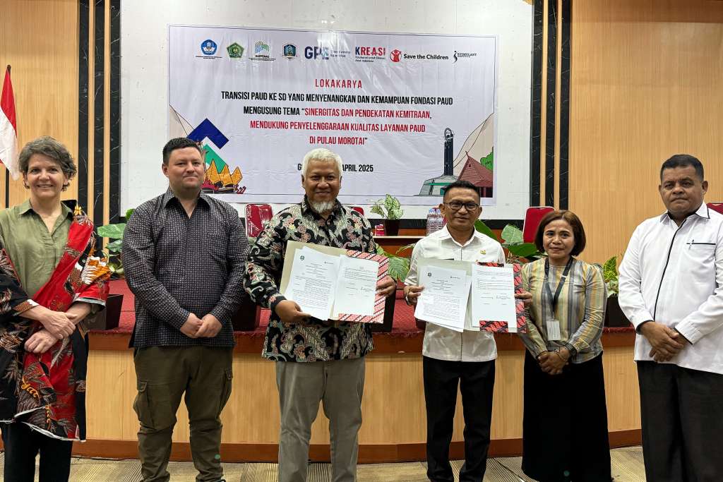 We began by attending a forum at the District Head’s Office in Pulau Morotai District, titled “Fun Transition from Early Childhood Education (ECE) to Primary School (SD).” While the name sounded light, the discussions carried weight. Together with Save the Children, Stimulant Institute, and the local government, the forum explored how to make the children’s transition from ECE to primary school smoother, more joyful, and focused on child well-being. One issue stood out. Many ECE teachers in Morotai haven’t received formal training in early childhood education. In fact, only two teachers currently hold a relevant degree. This significant gap, greatly impacts children’s learning experiences in their early years.