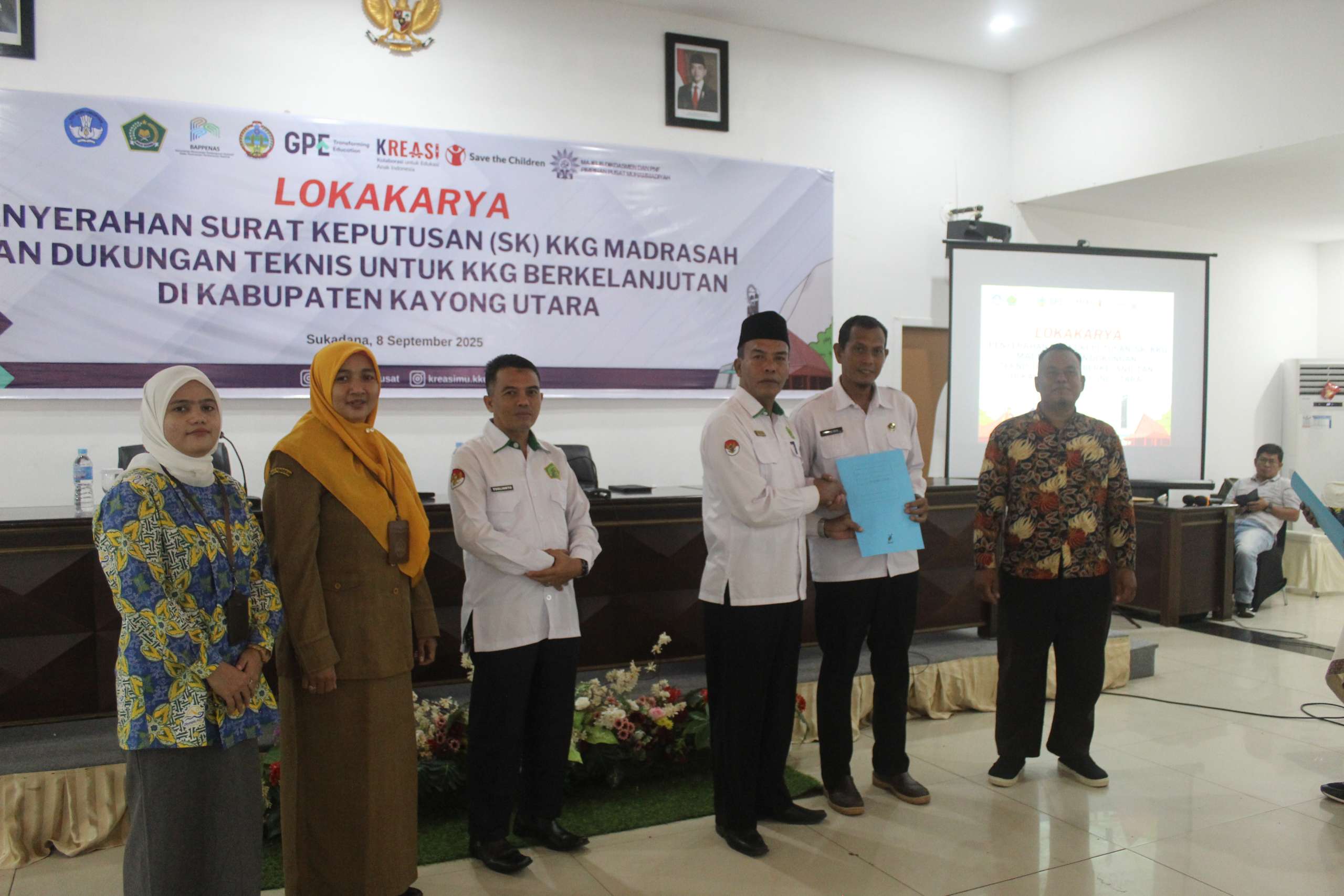 The Head of the Ministry of Religious Affairs Office (Kemenag) of Kayong Utara, Tengku Indra Kusuma, officially handed over the SKs to the two KKG clusters as a legal basis to support their continuity and operations at the education unit level. In addition, participants received technical support in the form of training on governance strengthening, organizational management, work plan development, and resource management.